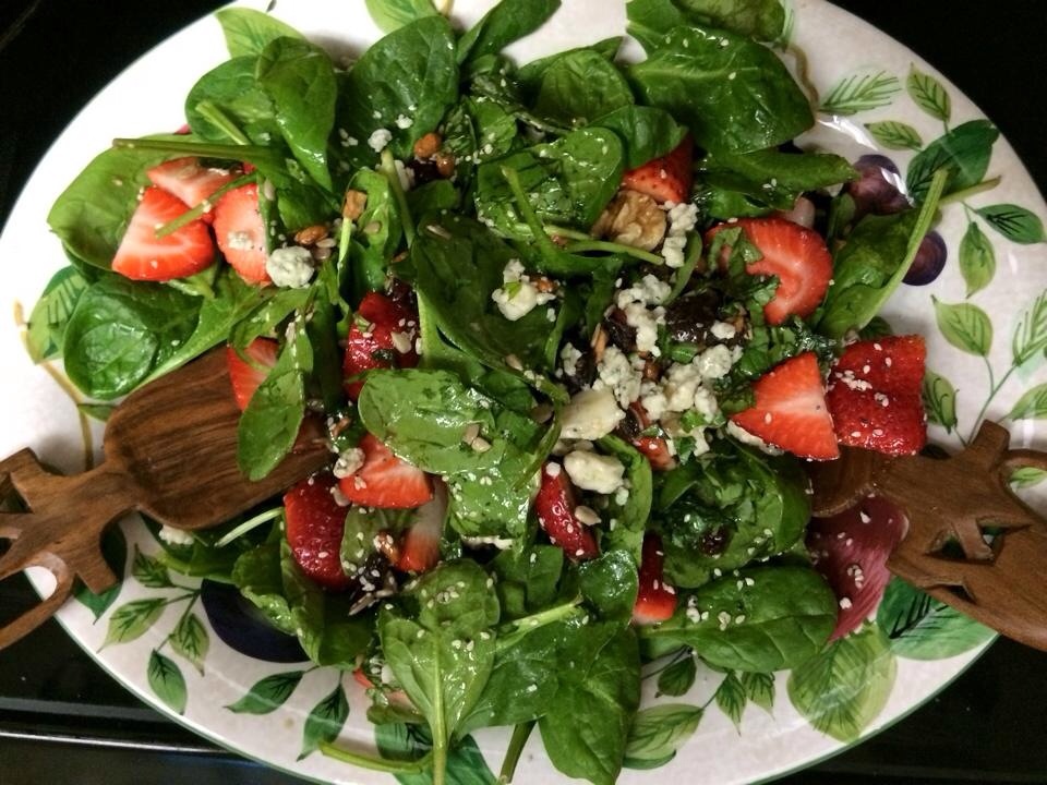Spinach, Strawberry and Trail Mix Medley Salad