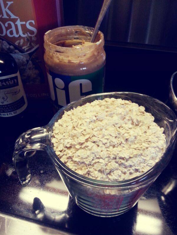 - 3 cups quick cooking oats, uncooked – in a 2 cup measuring cup, you can pour the oats to the very top of the glass. It will equal 3 cups
