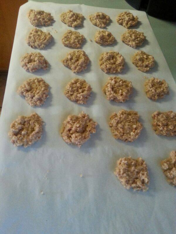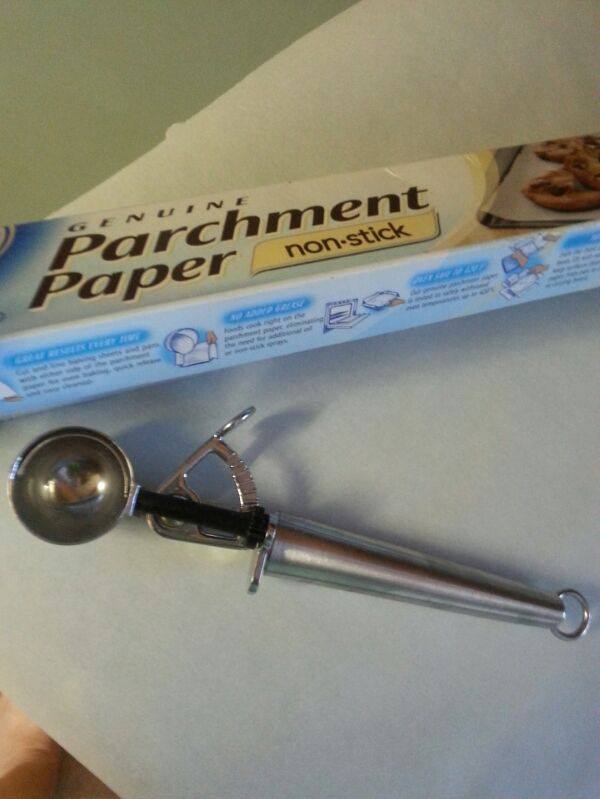 Drop by teaspoonfuls or use a Melon Baller onto Parchment Paper. We like to use the Melon Baller or cookie scoop to speed up the process and create more uniform cookies.