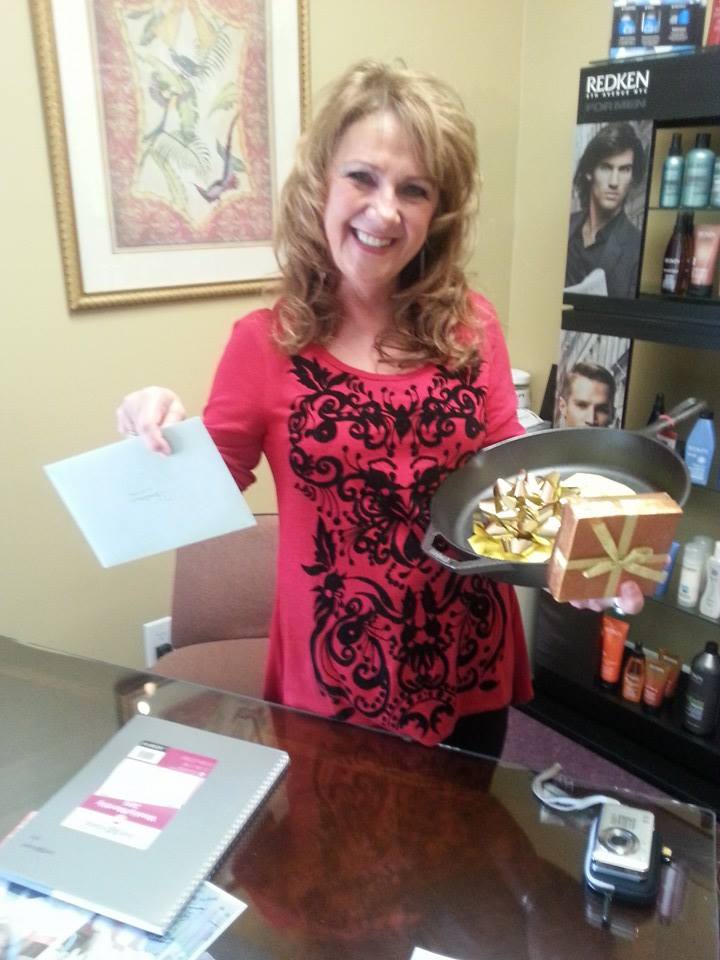 We are SO excited to get to meet our FIRST Winner in the Two Cousins and a Skillet’s contest! Pam Cagle, Owner and Master Stylist at JP Cutters Hair Salon in Huntsville, AL was chosen out of over 4,000 submissions! The Two Cousins (Amy and I) are BLOWN away by ya’ll’s support so we are going to have TWO contests a month!