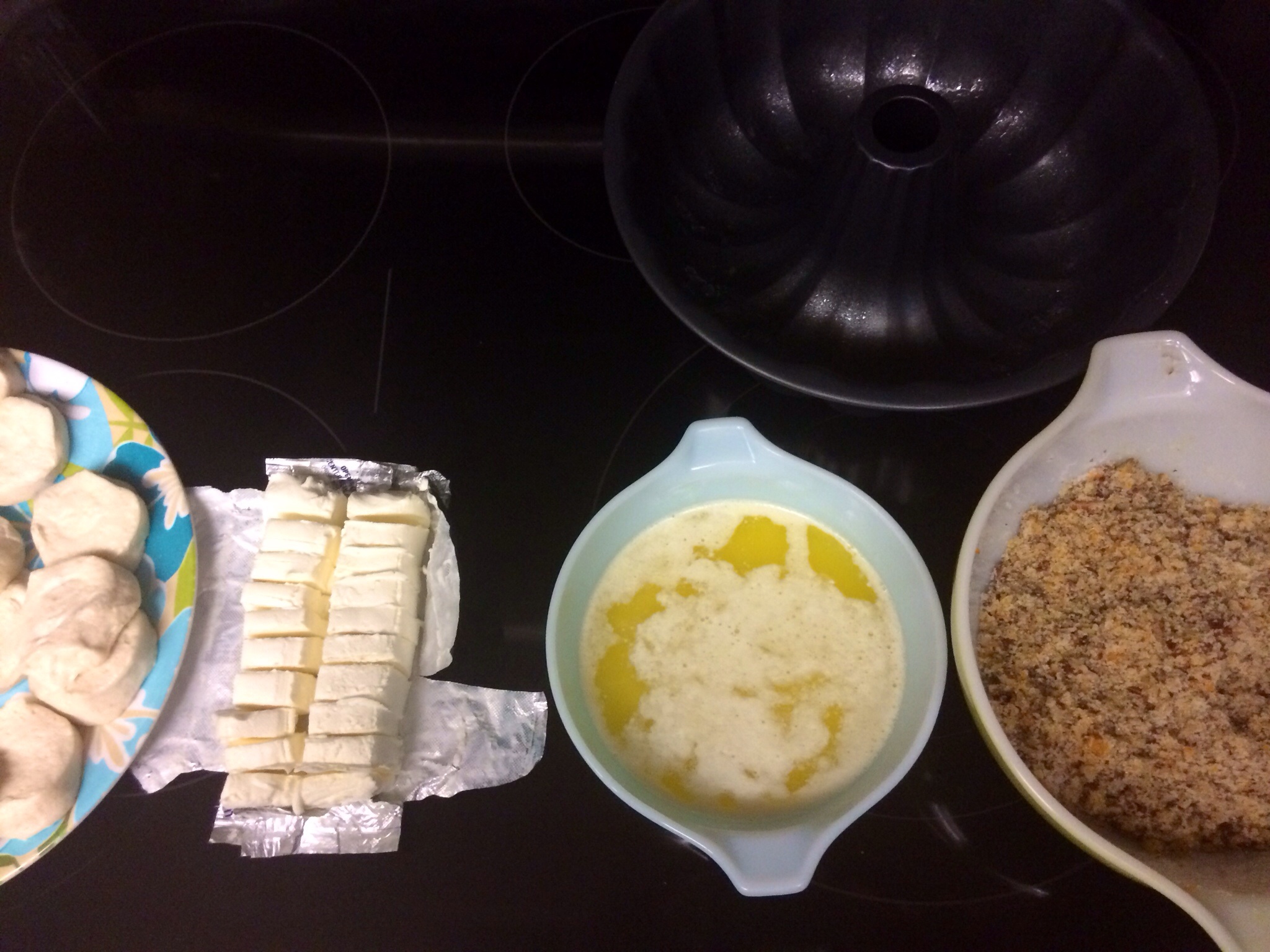 Place each piece in lightly greased Bundt pan, fold-side down.