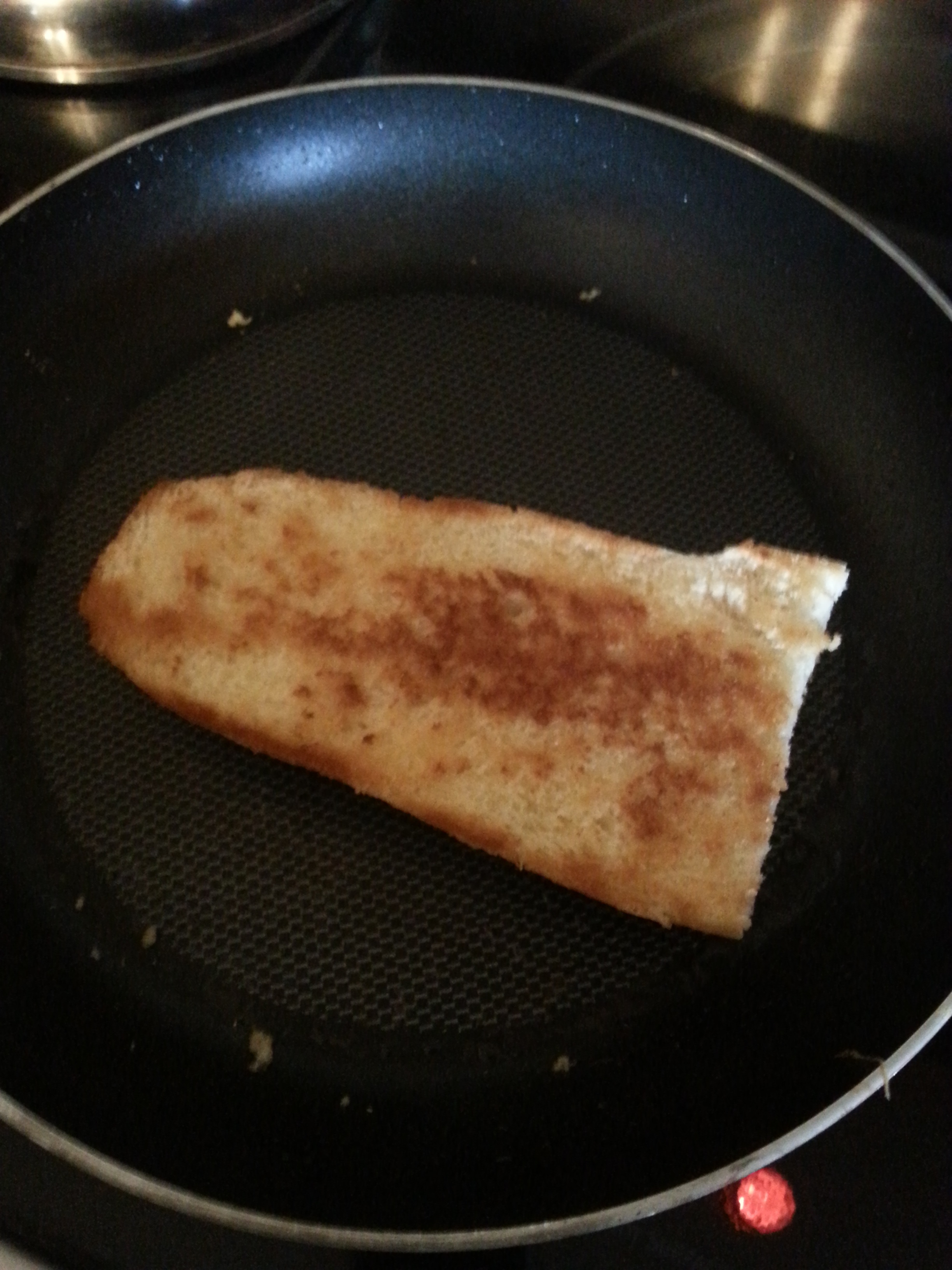 On 1/4 of the Italian bread loaf or on 1/2 of a sub bread, butter and lightly toast it over Medium Heat. Set aside.