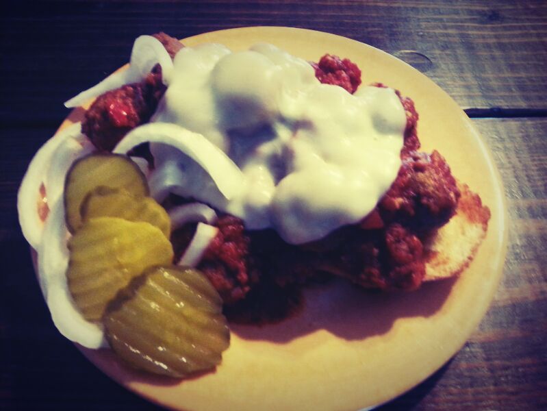 To assemble, place the bread on a large plate. Pour 8-12 meatballs and sauce over the bread. Top with Provolone Cheese and serve with Dill Pickle Slices, Onion Slices, Sauteed Mushrooms or Green peppers and Onions! Repeat for as many as you are serving!