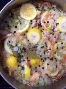 This shrimp stock can be made and used in many recipes and Creole/Cajun recipes. I always make a huge batch and freeze it in 2-cup portions. When peeling raw shrimp, save all tails, skins, legs, etc. into a zip-lock bag, then store in the freezer. Once there are about 2-3 cups worth, make stock.