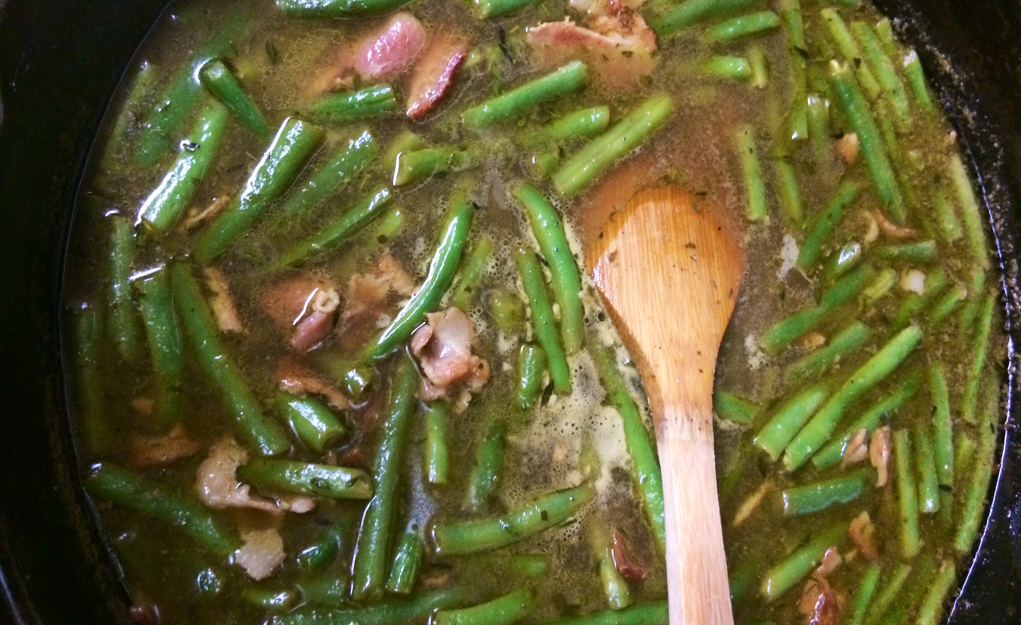1-2 lbs fresh green beans, snapped and rinsed in colander