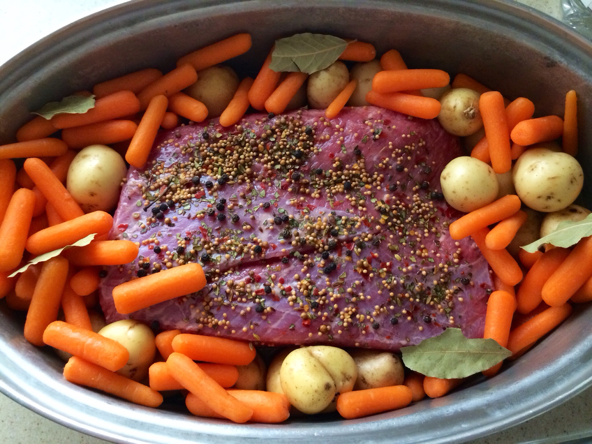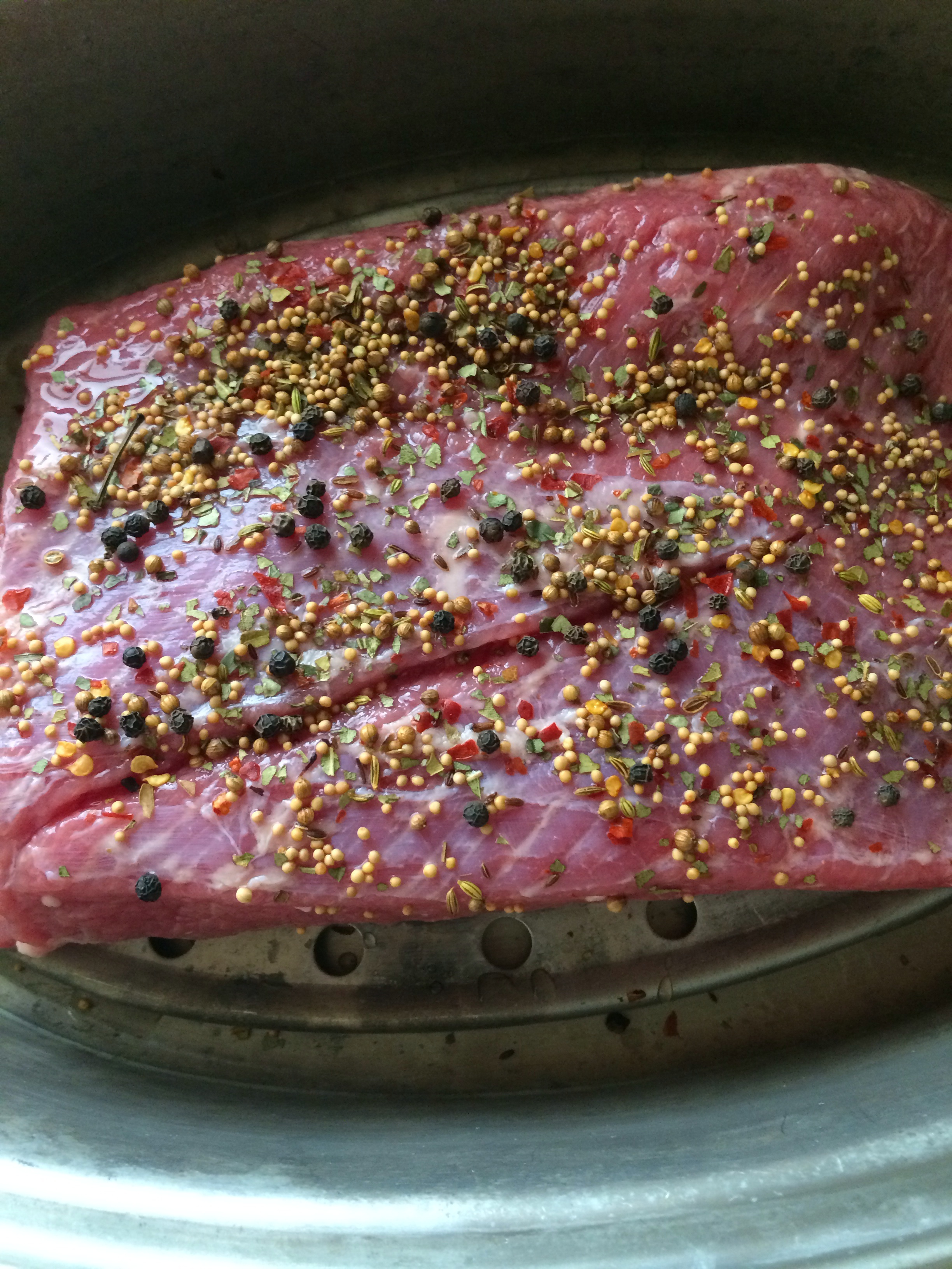 1 3lb. corned beef brisket, drained and rinsed of brine, seasoning pack removed