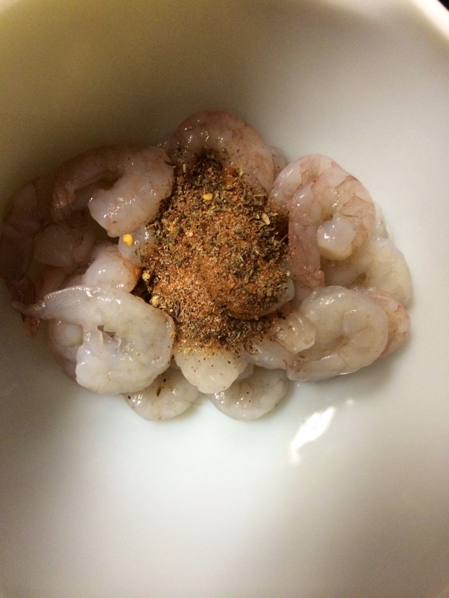 Add blackening spice to shrimp in bowl and massage through to mix in.