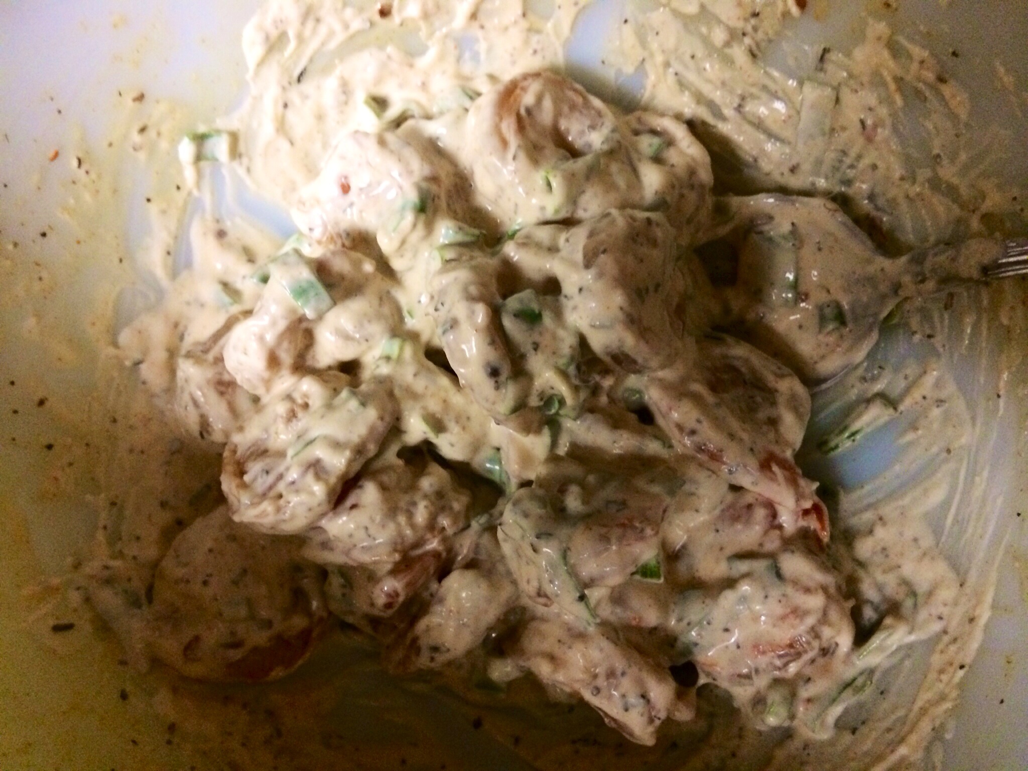 Put in refrigerator to rest. Serve on bread or as a salad over fresh greens.
