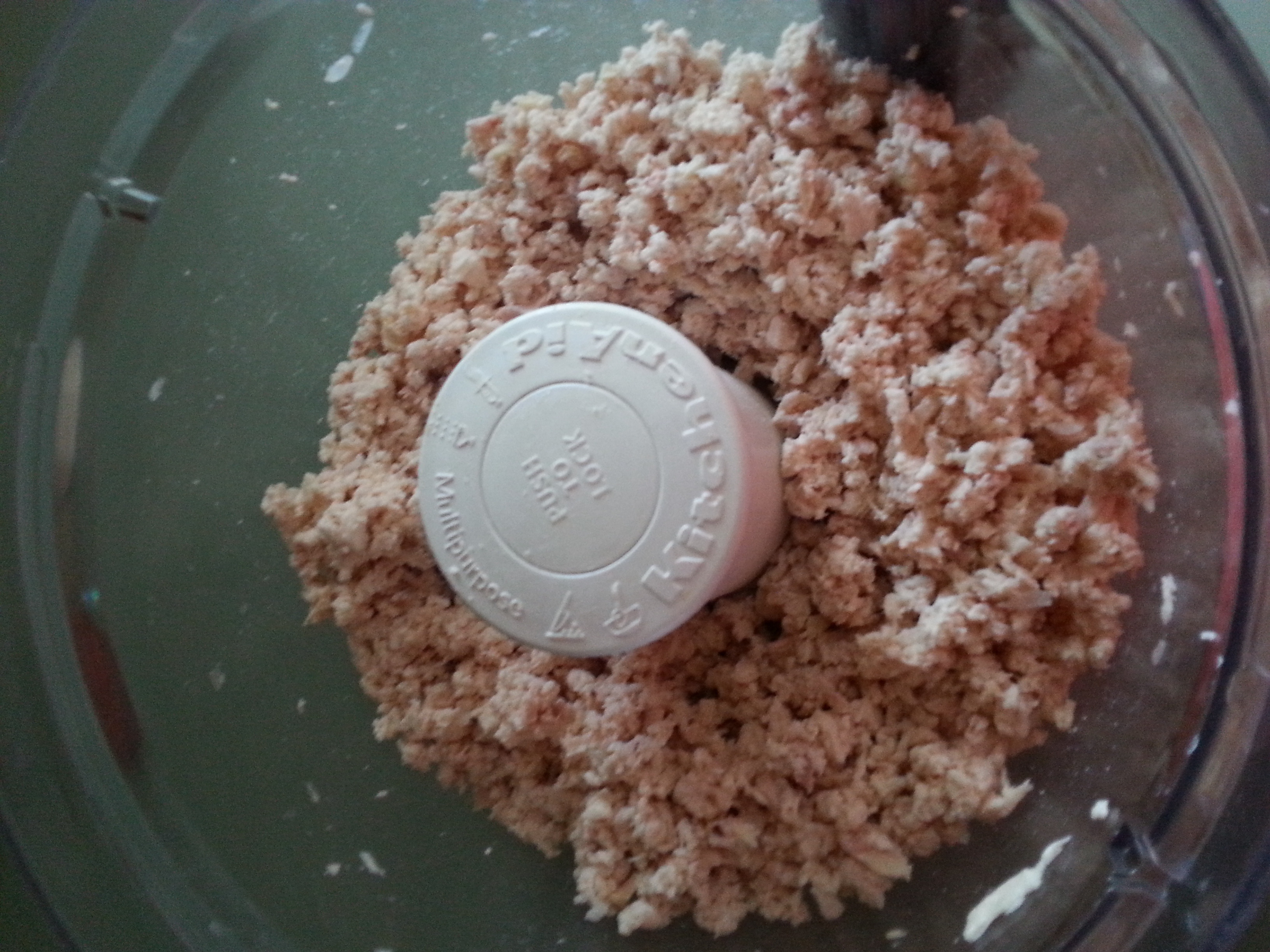Add the chicken into a food processor and pulse it until it resembles a course chicken meat. See below.
