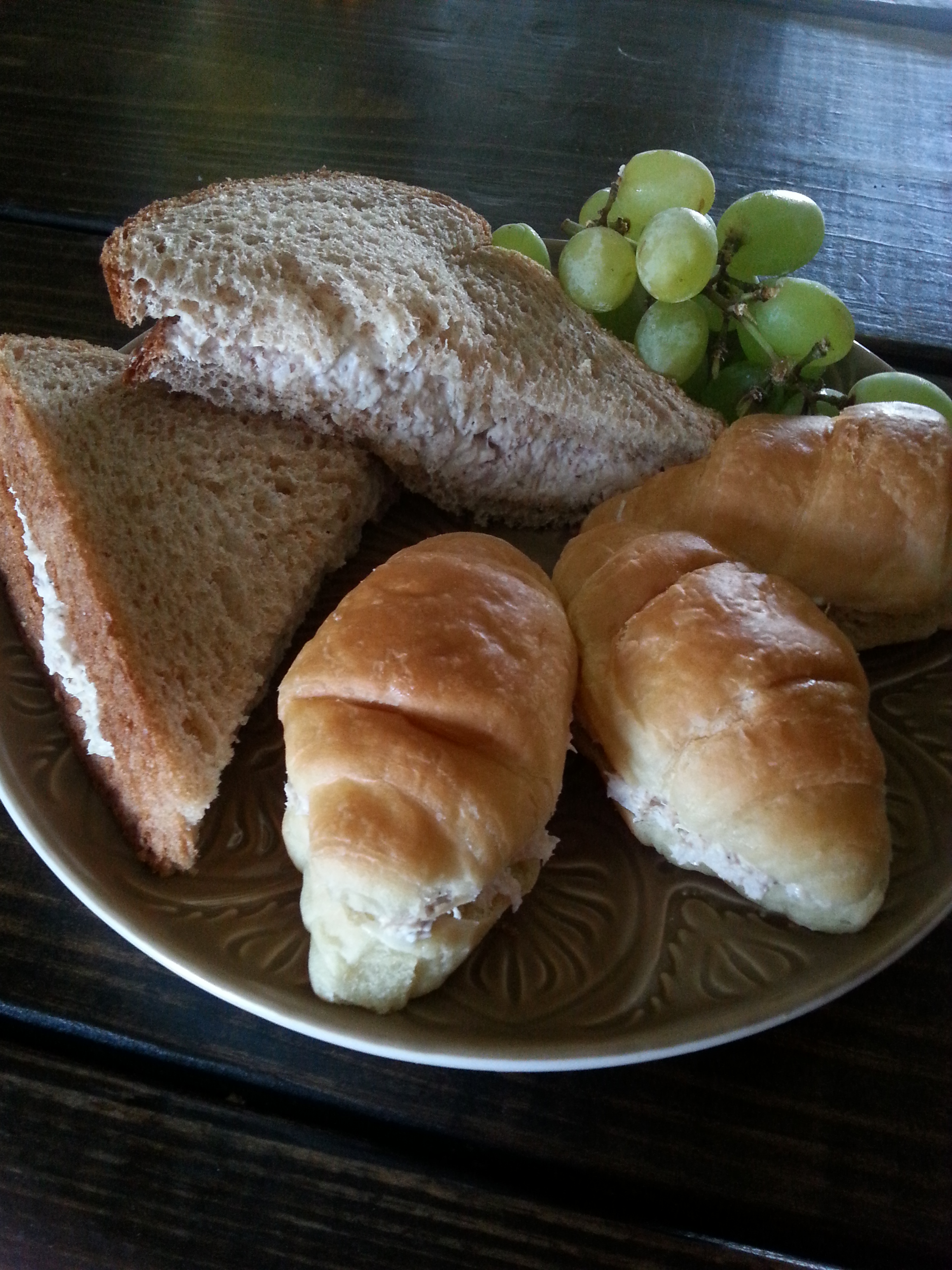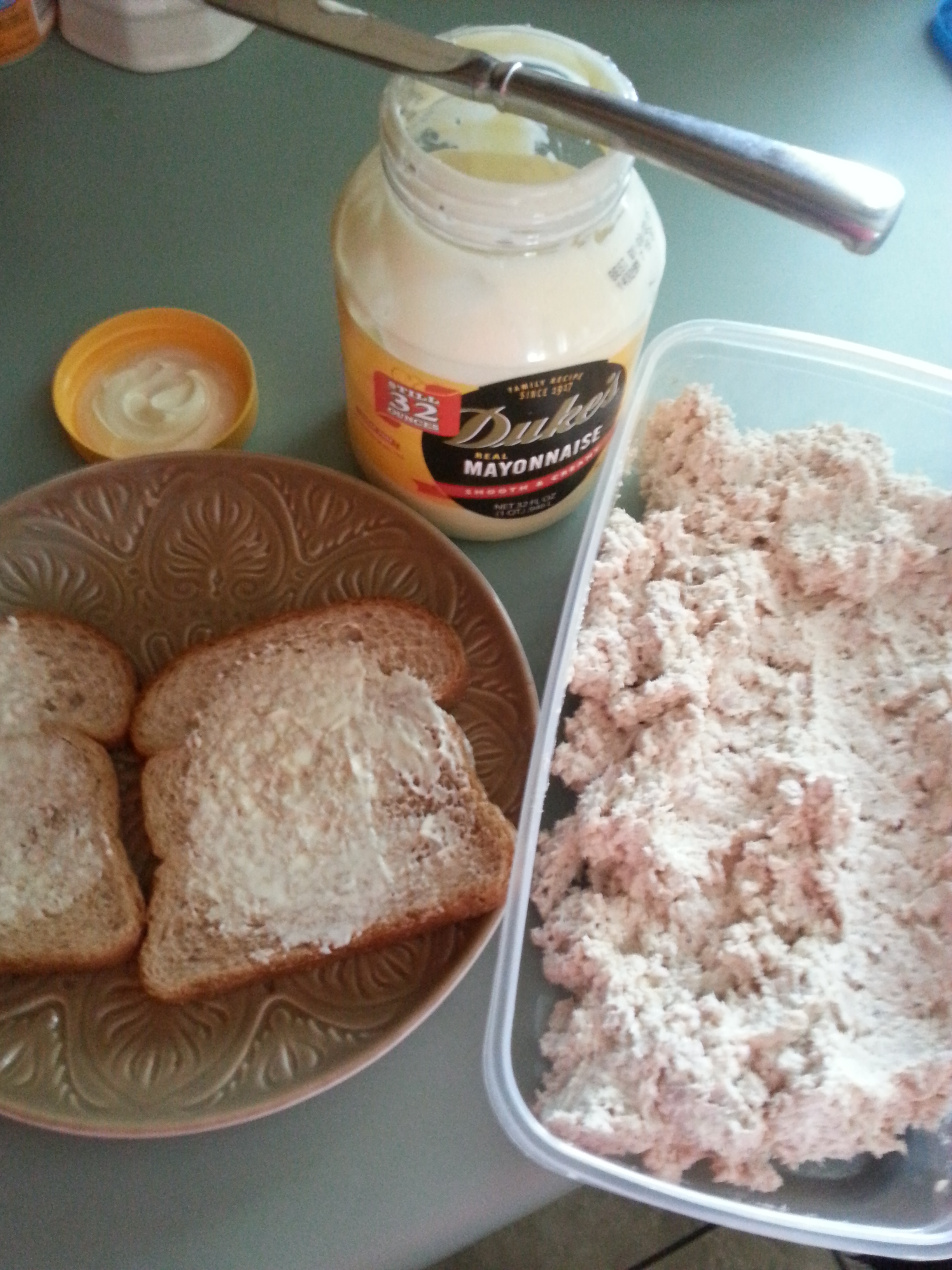 This is a drier spread so I like to put a small amount of mayo on my bread before I serve it. It keeps the salad from drying out. And who doesn’t love a little extra mayo??? Also note the bread is sugar free with no carbs, but the rolls are “ROLLING” in them! 🙂