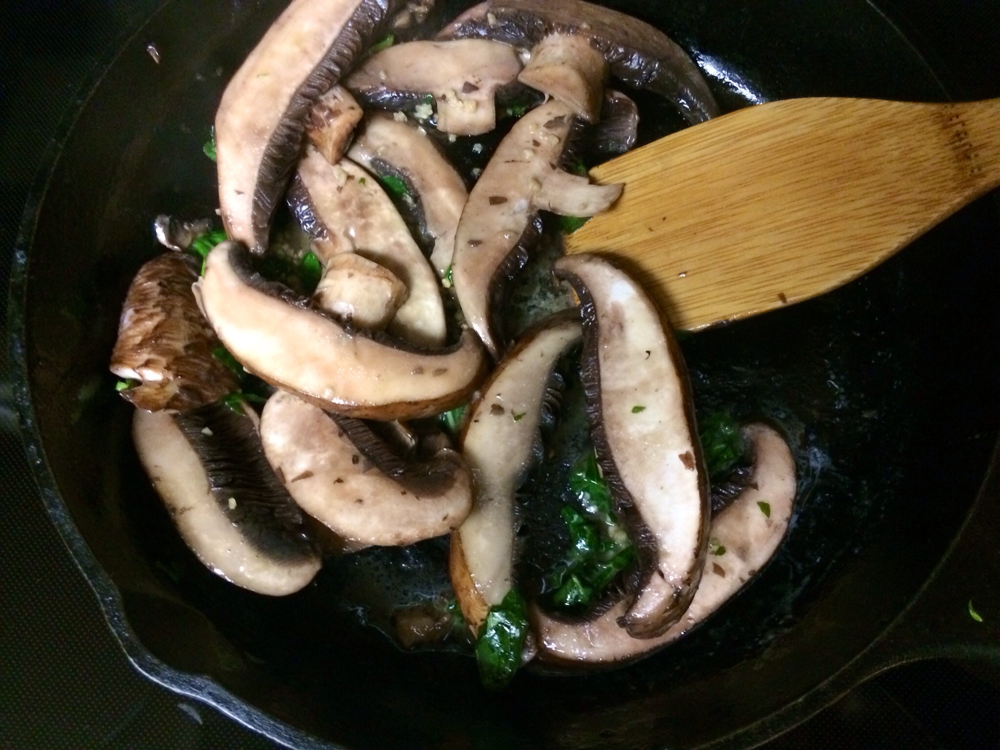 Heat small skillet with butter and oil. Add mushrooms and basil. Sauté until soft. Add garlic and sauté another minute. Add sauce of choice. Simmer 10 minutes on medium-low heat. Serve over pasta, rice or meat.