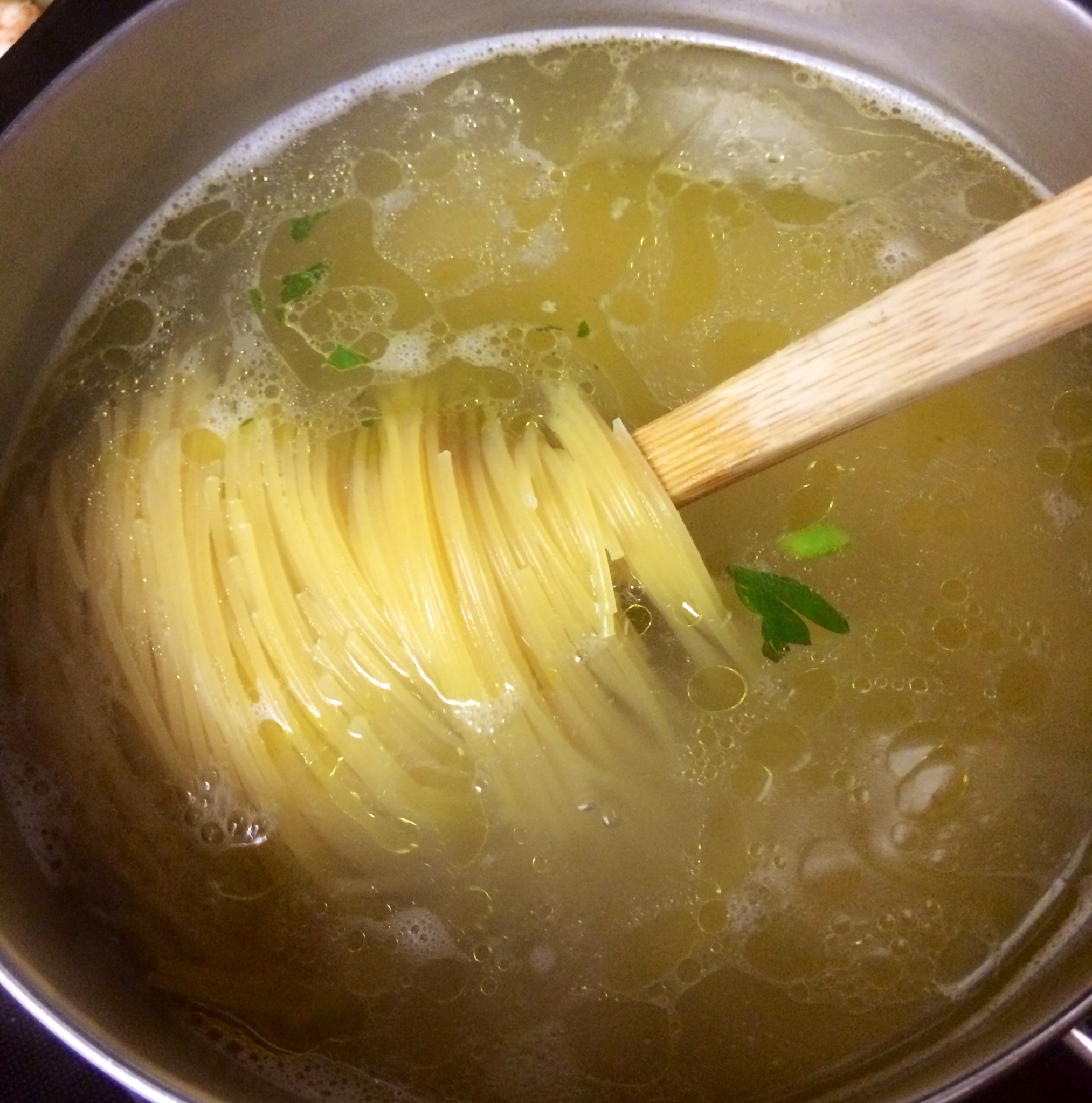 Prepare pasta according to package directions. Drain in colander and add to scampi in skillet. Mix well and let rest 5-10 minutes. Serve up!