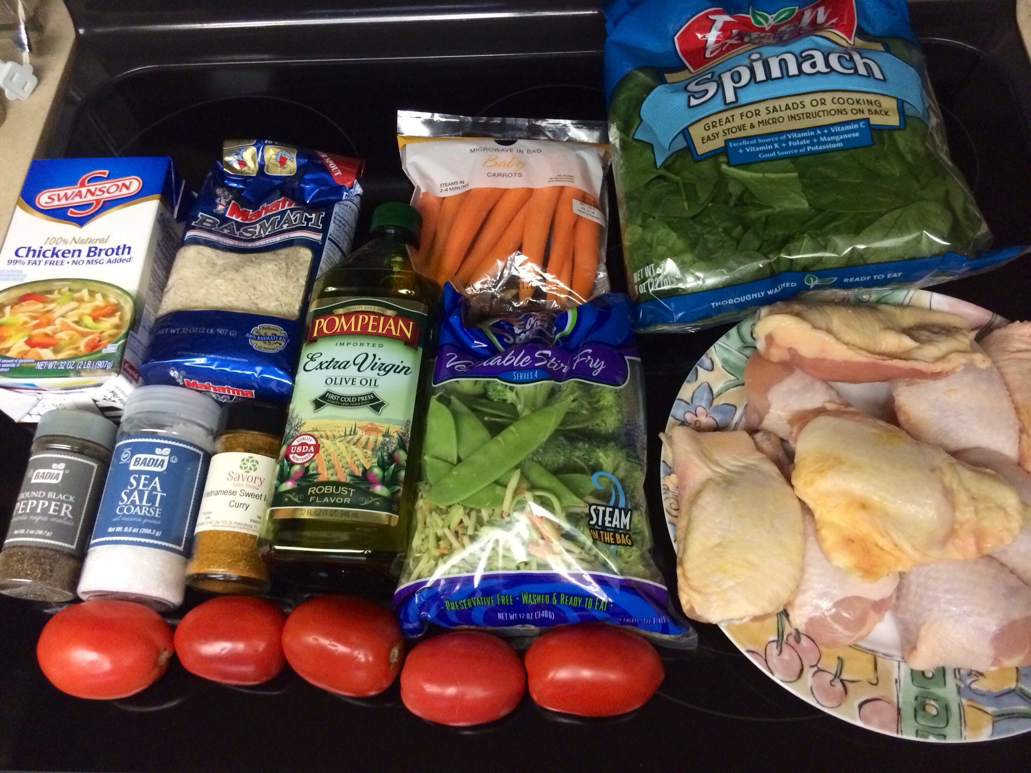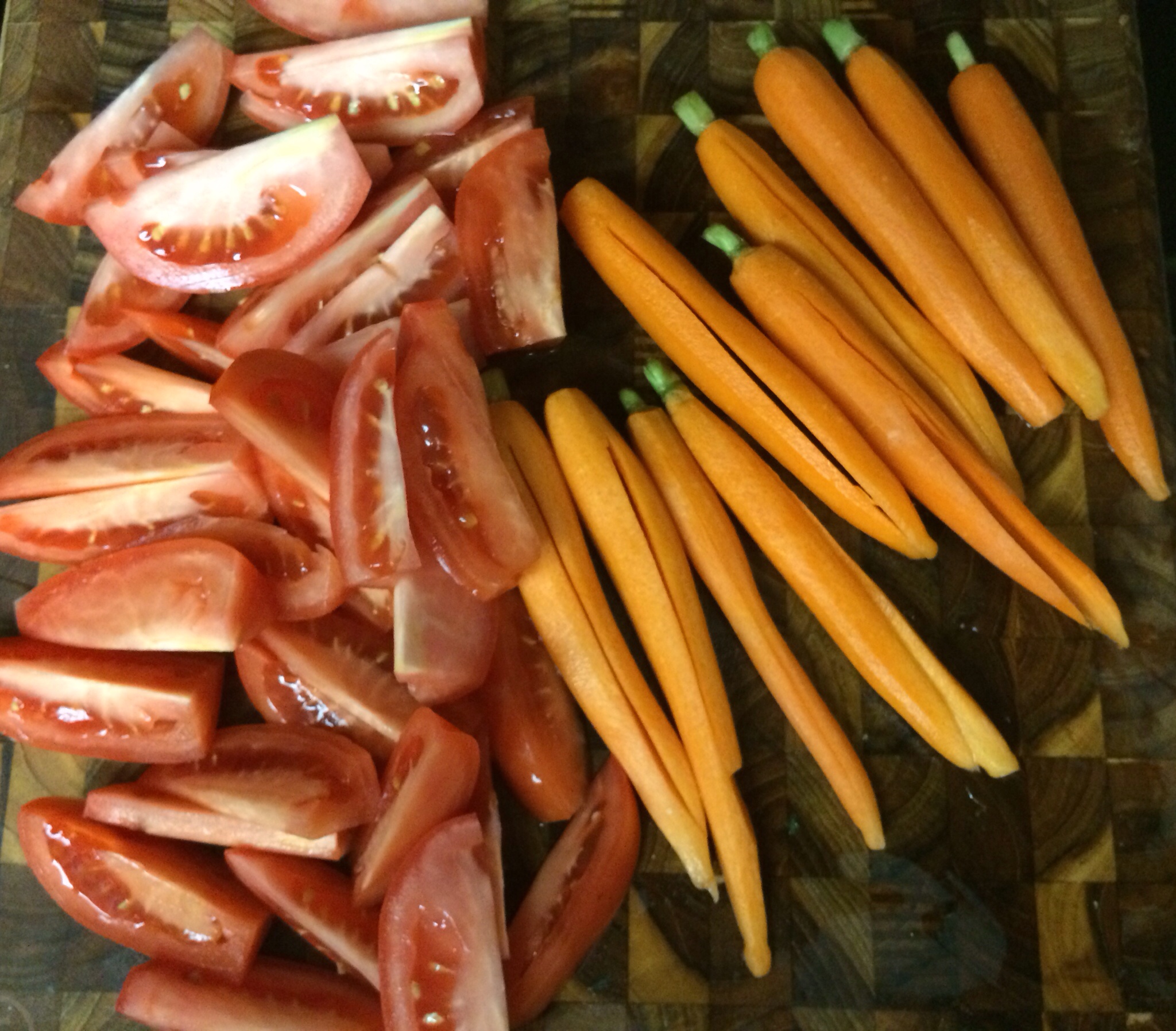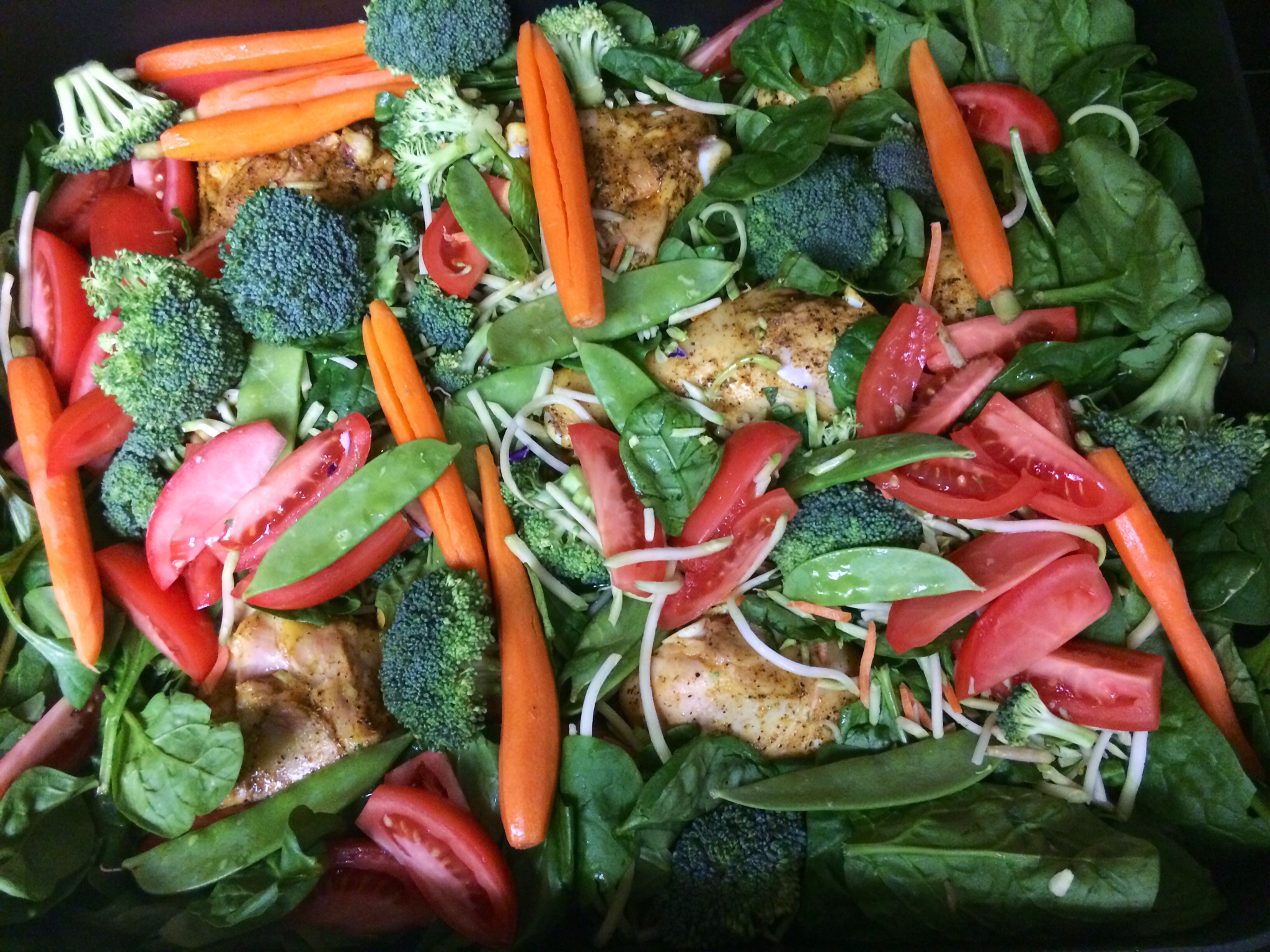 Fresh vegetables of choice (stir fry vegetables, carrots, spinach and Roma tomatoes used in this recipe)