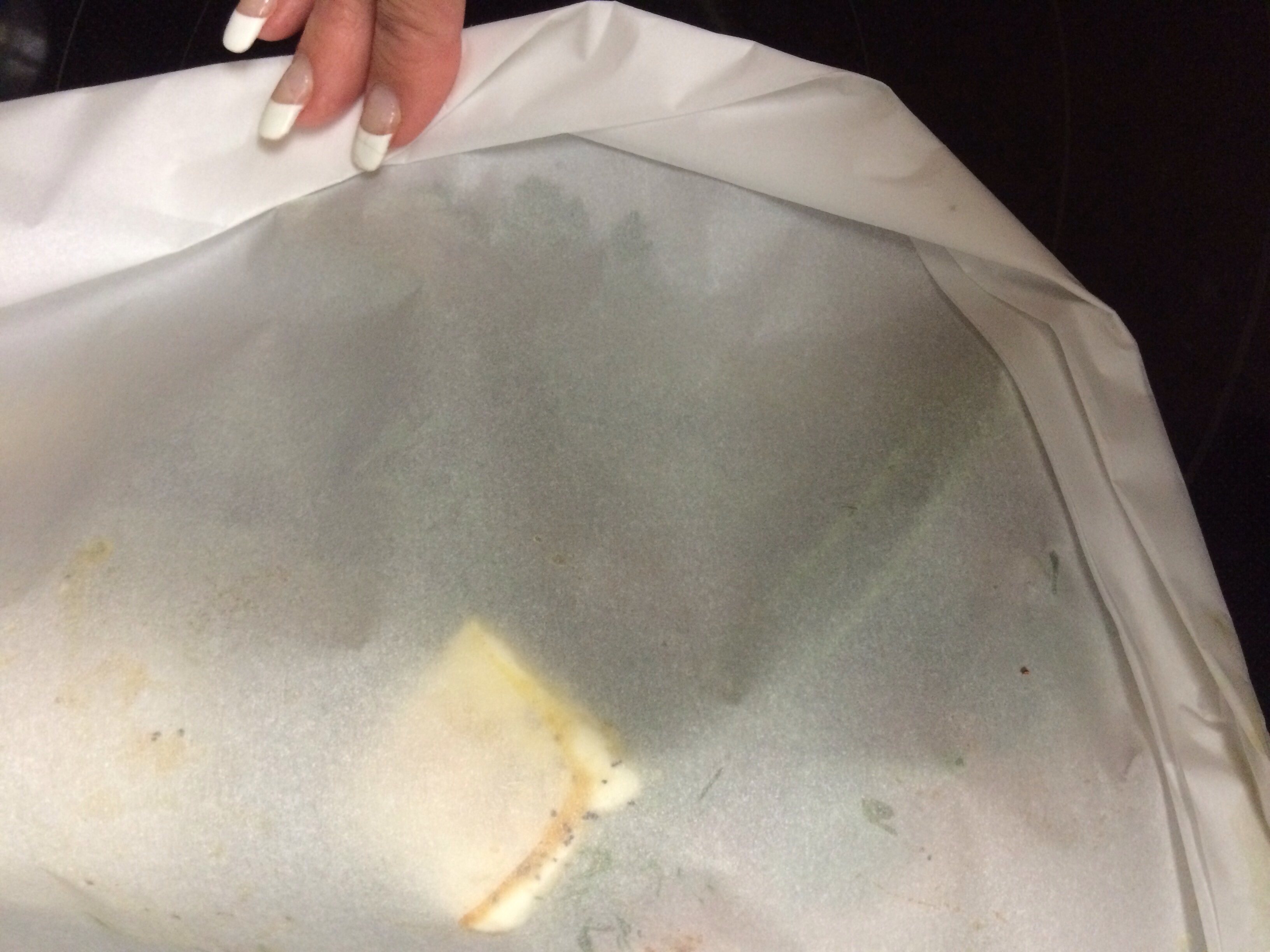 Tear off sheets of parchment paper in 2-foot sections. Fold in half to create a crease.