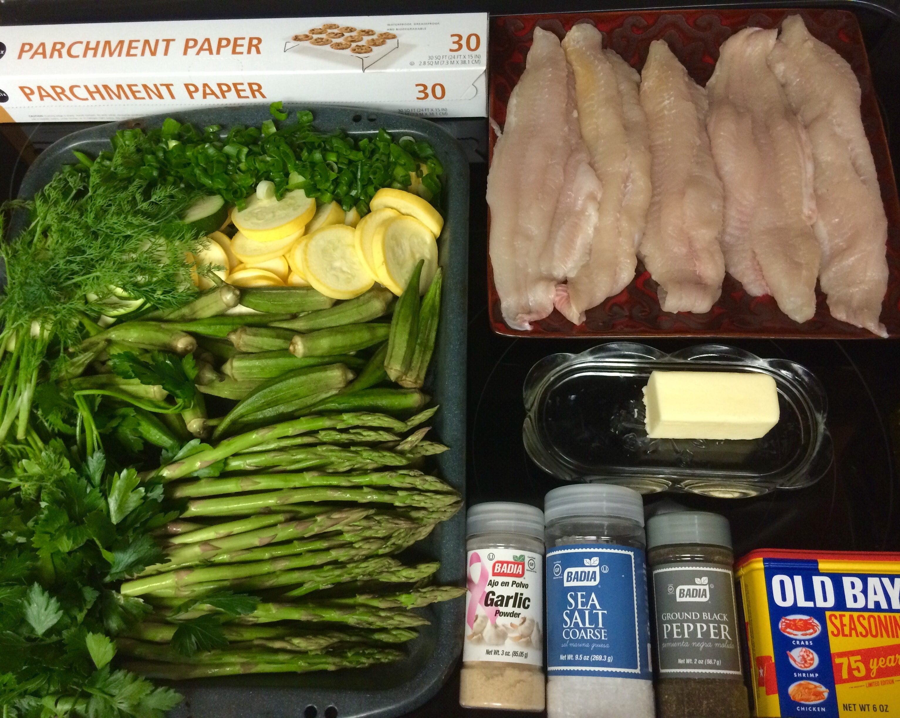 This was so easy and delicious! Catfish filets were used, but any fish would work as well. We hope you try it and enjoy it as much as we did. Feel free to substitute any vegetables you like.