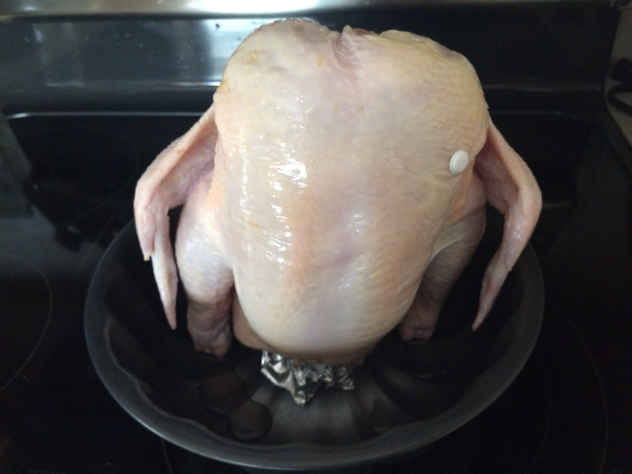 Place chicken cavity over foil-lined center of bundt pan. Coat generously with spice and butter mixture.