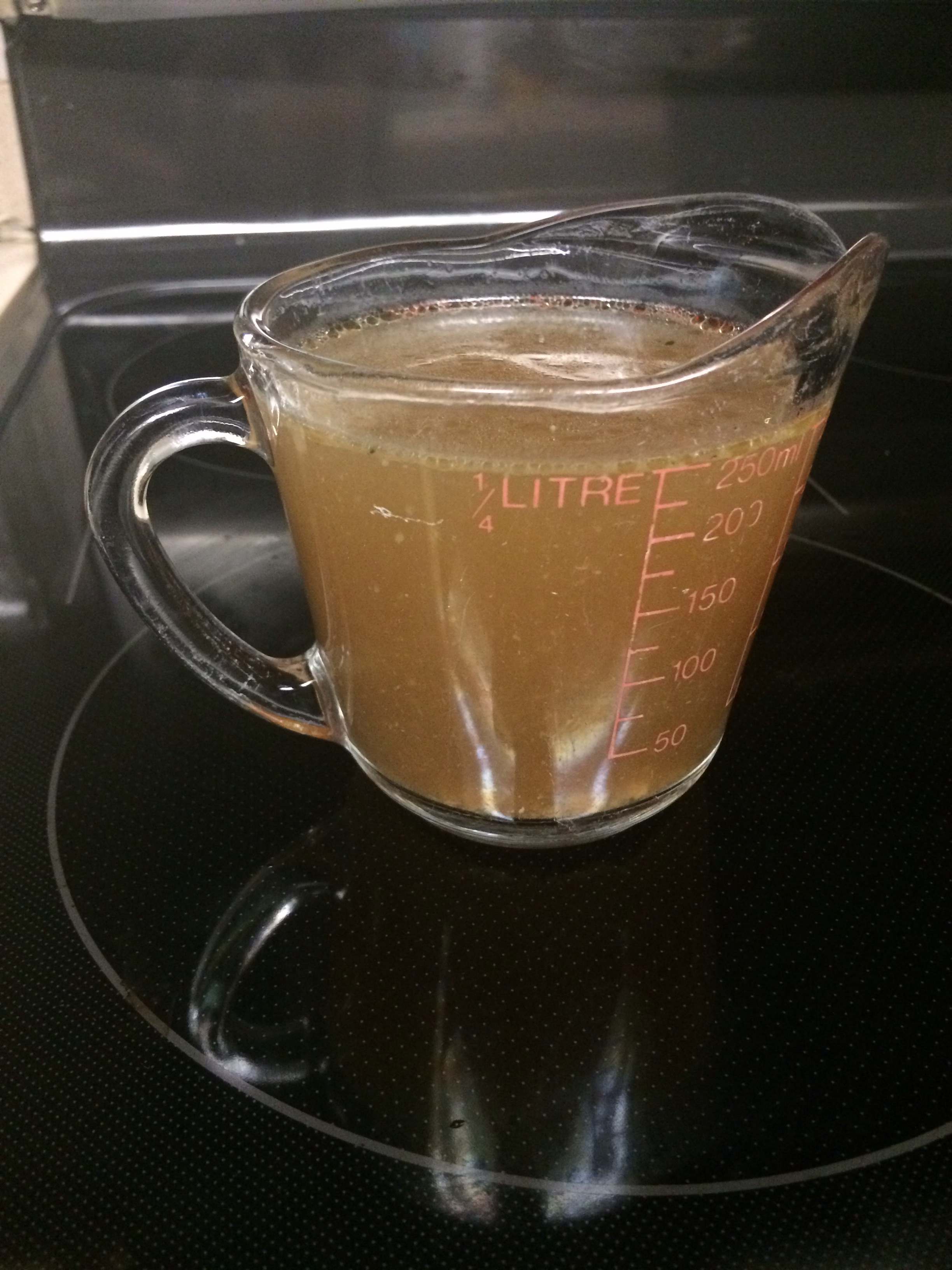 With baster, remove enough juice to equal 1 cup and add to small mixing bowl. Whisk 1/2 cup flour into broth about a Tb at a time until blended. Add gravy back to bundt. Place chicken in oven and cook an additional 30 minutes.