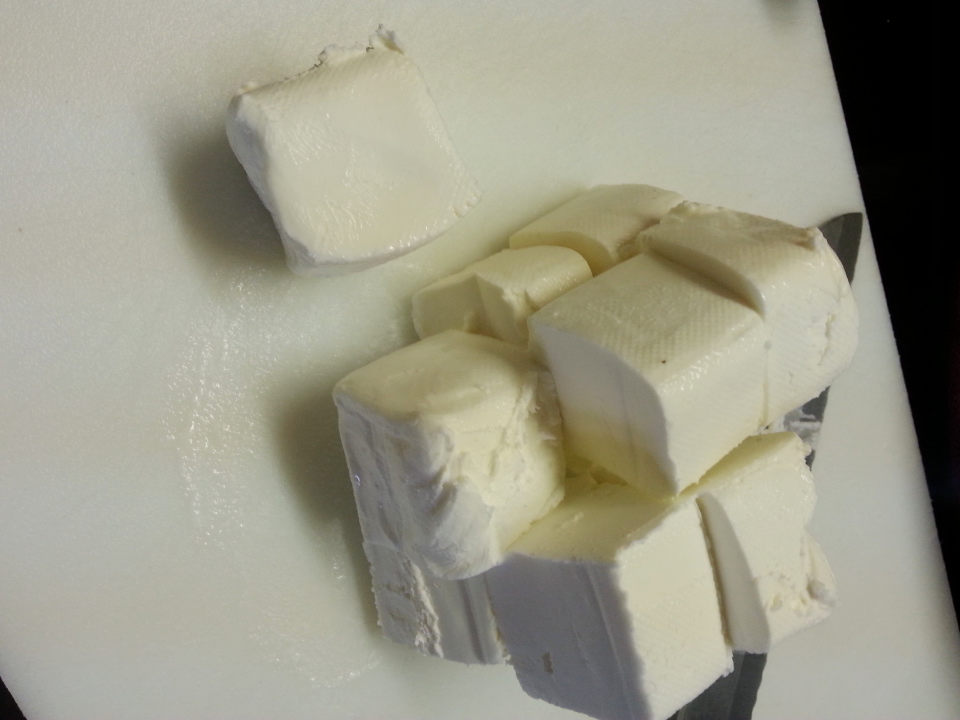 Cut the block of cream cheese into squares.