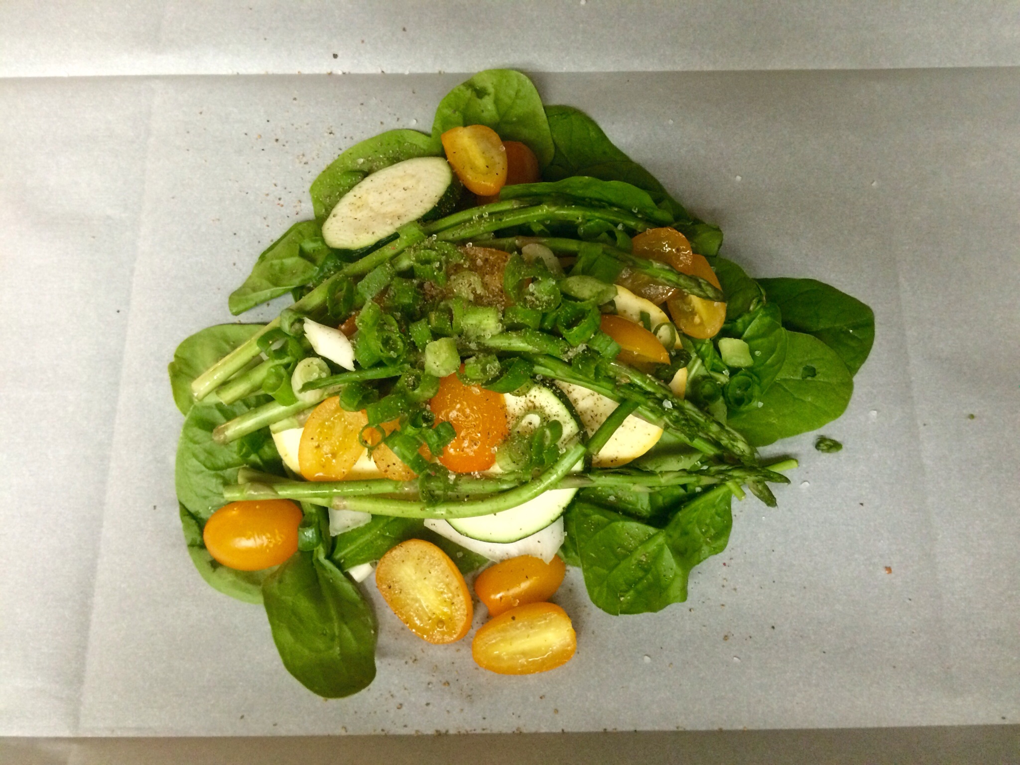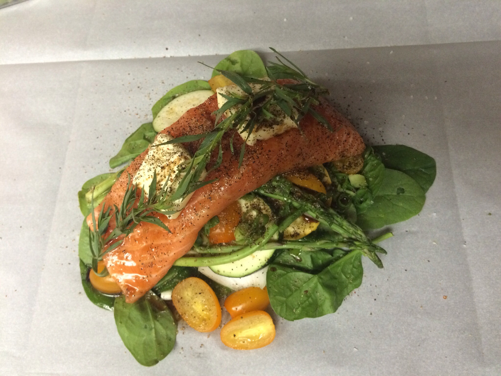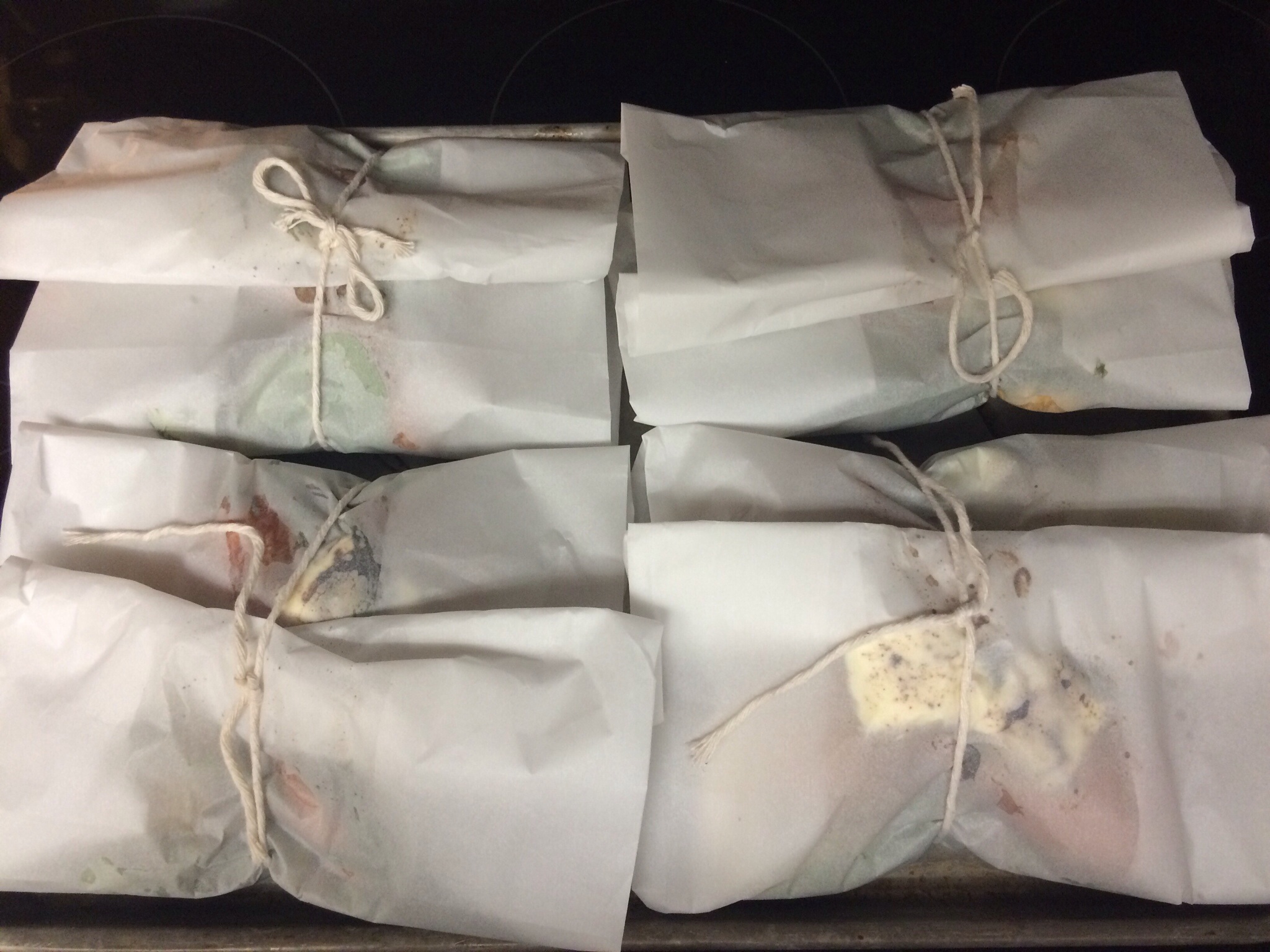 Parchment paper is wonderful for cooking seafood and vegetables. It is so easy. Do not let the folding of the paper scare you. As long as it is sealed, it is fine. I just so happened to fold this particular one my own way. Parchment paper may be folded many ways, as long as it seals. We hope you enjoy!