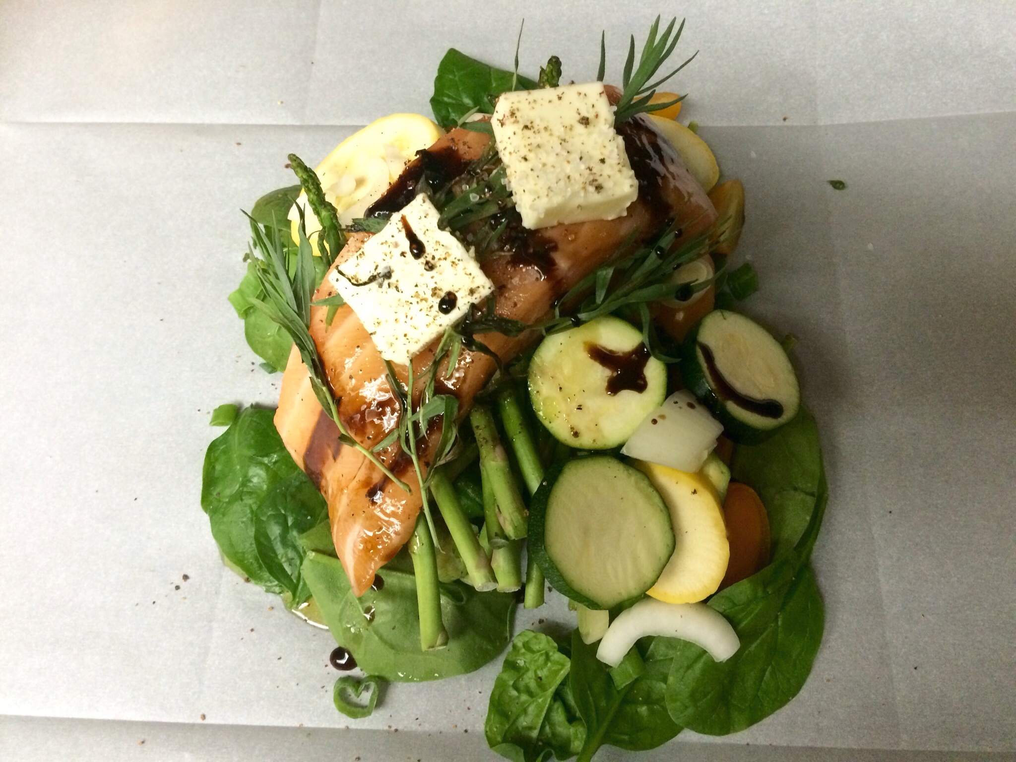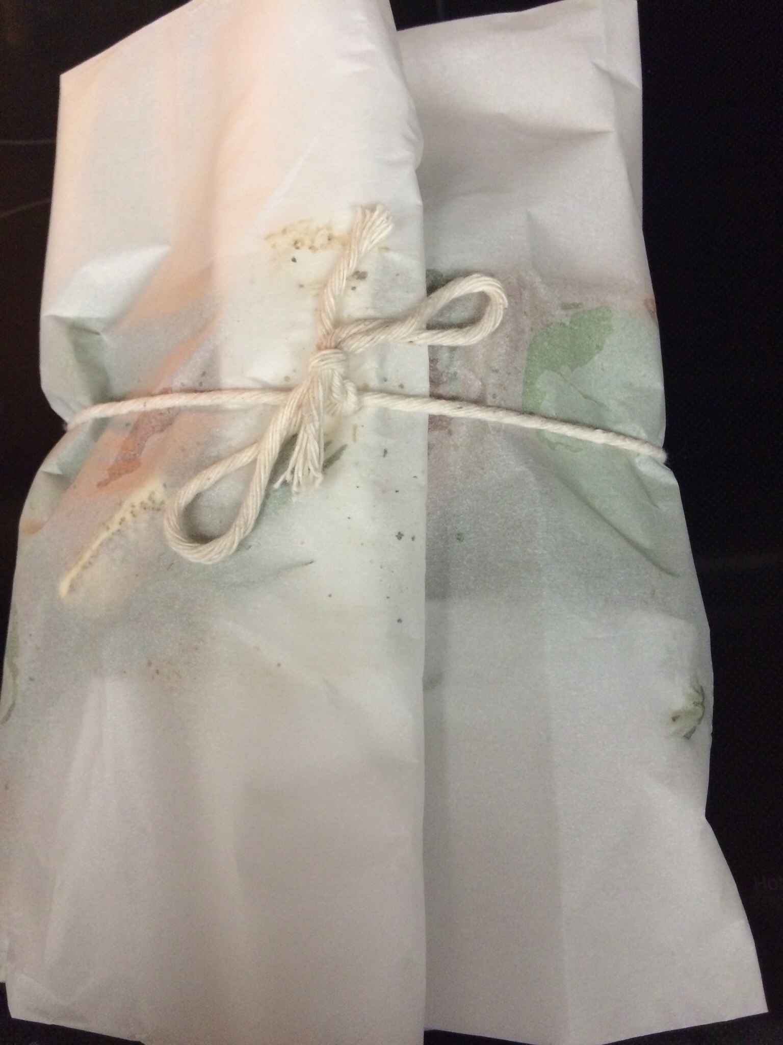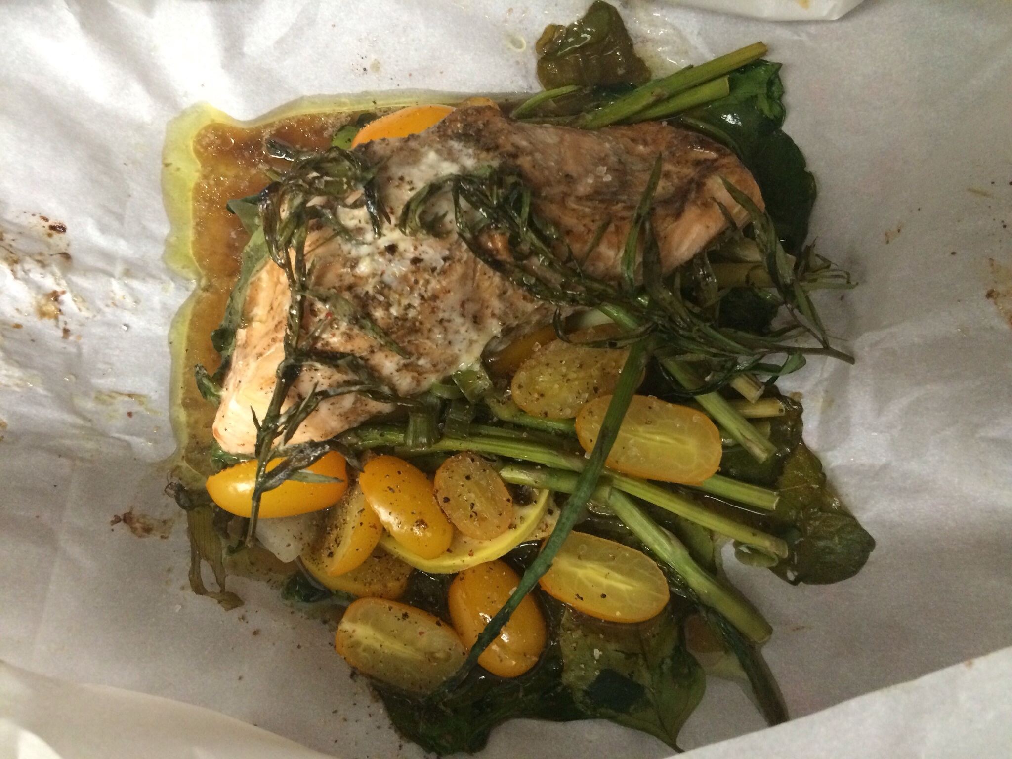 Parchment paper is wonderful for cooking seafood and vegetables. It is so easy. Do not let the folding of the paper scare you. As long as it is sealed, it is fine. I just so happened to fold this particular one my own way. Parchment paper may be folded many ways, as long as it seals. We hope you enjoy!