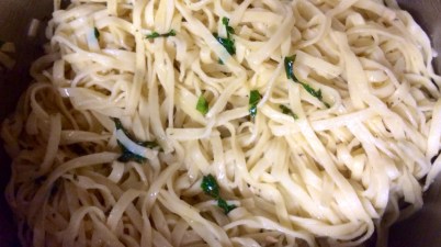 This linguine was another “afterthought” that came out very well. So easy to prepare. 1 pkg. Bertoni linguine 1/2 stick butter 3 Tb olive oil 2 tsp chopped garlic 1 […]
