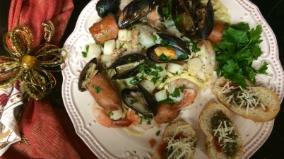 1 lb. peeled and deveined shrimp 1 lb. bay scallops 1-1/2 lbs fresh live mussels 2 small cans chopped clams 5 anchovy filets, chopped (optional, but enhanced the flavor well) […]