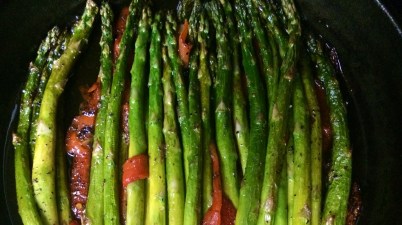 Preheat oven to 450. 1 bundle fresh asparagus 1 roasted red pepper from jar, sliced thin lengthwise 1 Tb olive oil 1 tsp ground black pepper 1 tsp sea salt […]