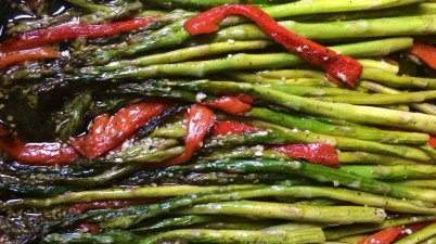 Roasted Asparagus with Garlic and Roasted Red Peppers