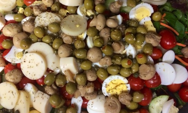 Salad and Italian Dressing SALAD 11-12 oz Spring Mix lettuce 2 oz shredded carrots 5 green onions, chopped 2 cucumbers, halved lengthwise and sliced thin 2 pints grape tomatoes, rinsed 1 small jar Manzanilla […] Two Cousins and a Skillet January 7, 2015 Leave a Comment