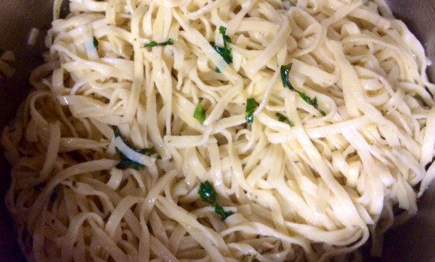 Garlic Herb Seasoned Linguine This linguine was another “afterthought” that came out very well. So easy to prepare. 1 pkg. Bertoni linguine 1/2 stick butter 3 Tb olive oil 2 tsp chopped garlic 1 […] Two Cousins and a Skillet February 24, 2015 Leave a Comment