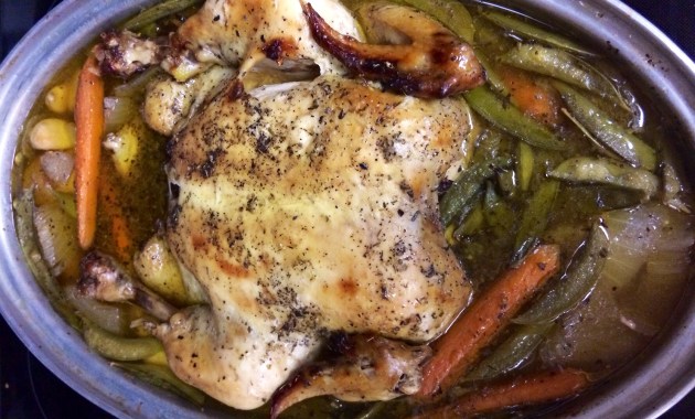 Mojo Hen with Potatoes, Vegetables, Garlic and Cuban Bread 1 large roasting hen 2 bottles Mojo marinade 20 very small roasting potatoes 1 large sweet or Spanish onion, cut into chunks 20 whole garlic cloves 1 cup snow pea […] Two Cousins and a Skillet January 5, 2015 Leave a Comment