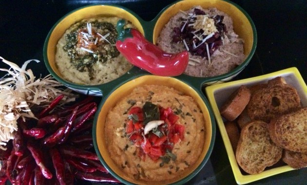 Kalamata Olive Hummus, Roasted Red Pepper Hummus and Garlic Pesto Hummus Hummus is so easy to make and very healthy. It usually contains chickpeas, lemon juice, basil, garlic (optional), and sesame tahini. This posting showcases three variations. All were very delicious […] Two Cousins and a Skillet February 1, 2015 Leave a Comment