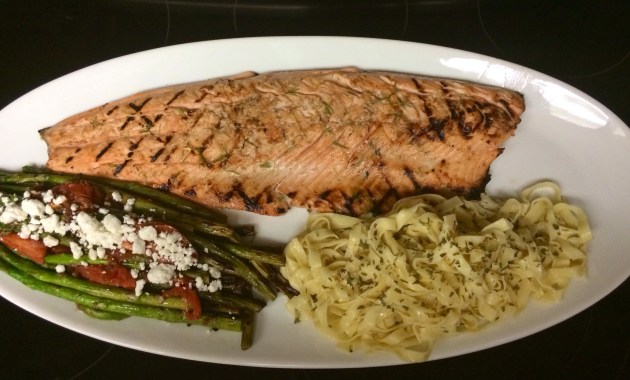 Grilled Salmon with Asparagus, Tomatoes and Fettucine 2 lbs fresh salmon, rinsed and patted dry MARINADE FOR SALMON 1/3 cup vegetable oil 1/3 cup apple cider vinegar 1/3 cup water 1 packet dry Wishbone Italian dressing mix […] Two Cousins and a Skillet March 7, 2015 Leave a Comment