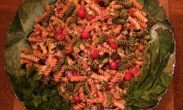 Pasta Salad with Lemon Vinaigrette Dressing 2 12 oz boxes Tri-Color Rotini pasta (or pasta of choice) 1 Tb and 3/4 cup olive oil Salt and pepper, to taste 1 small can sliced black olives 8 […] Two Cousins and a Skillet January 13, 2015 3 Comments