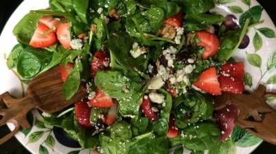 12 oz baby spinach 12 oz fresh strawberries 8 oz trail mix that includes dried cranberries, chopped pecans and any other nuts or dried fruit 4 oz gorgonzola cheese, crumbled […]